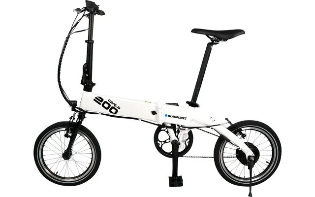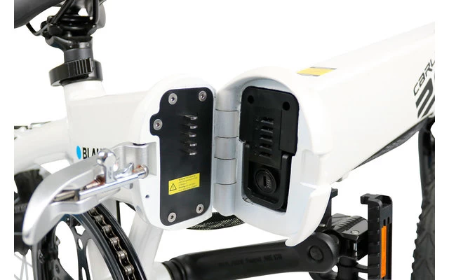 Nachfolger des beliebten 16“ CARLA 190, Heckantrieb mit neuem, optimierten Controller, Kraftvoller Li- Ionen Akku 36 V/ 7,8 Ah für bis zu 60 km Reichweite mit kurzer Ladezeit, Akku entnehmbar/ abschließbar, Stabiler, faltbarer Aluminiumrahmen, Leicht verstaubar durch intelligenten Schnellspannmechanismus incl. faltbarer Pedale & Lenkstange LCD- Fahrrad- Computer mit 5- stufiger Tretunterstützung bis 25 km/h, Schiebehilfe/ Anfahrhilfe, Tektro V- Brake Bremsen, nur ca. 15 kg Gewicht incl. Akku, erfüllt die Anforderungen an die StVZO, Arctic weiß im Blaupunkt Design