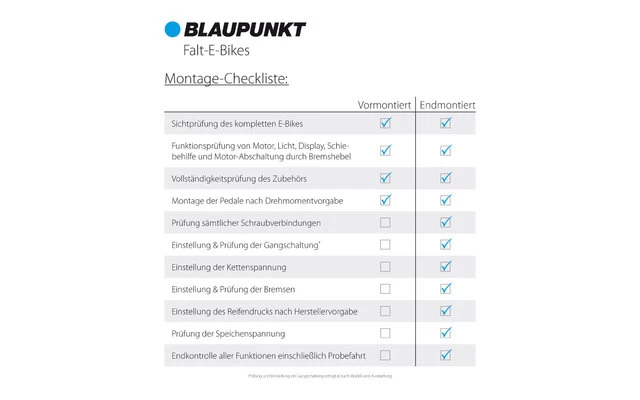 Die Serviceleistungen sind nur für Blaupunkt E-Bikes anwendbar. Modelle anderer Hersteller sind von den Leistungen ausgeschlossen.