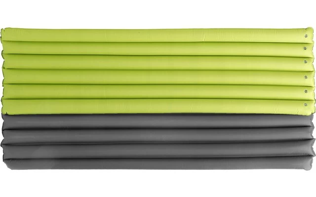 Leichtluftmatratze aus robustem Antirutsch-Polyestergewebe mit sechs Luftkammern. Sie wird inklusive Packsack geliefert.