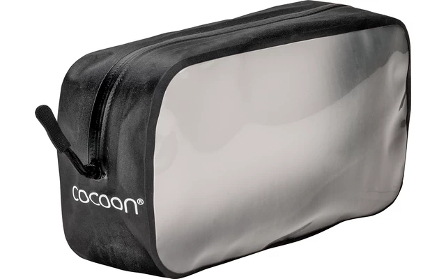 Komplett geschweißte, wasserdichte Plastiktasche für im Handgepäck mitgeführte Flüssigkeiten. Mit YKK (Yoshida Kogyo Kabushikikaisha Verschluss) Aqua Guard Water Repellent Zipper.