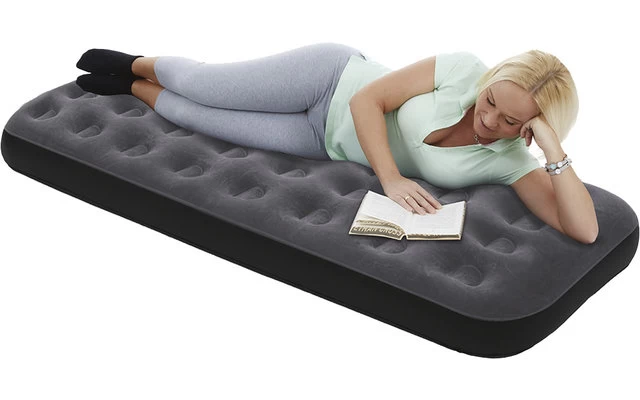 Egal ob als Camping-Matratze oder Gästebett, auf dem Luftbett schlummern Sie gemütlich ein. Ein hautfreundlicher beflockter Velour Stoff verziert die Liegefläche.