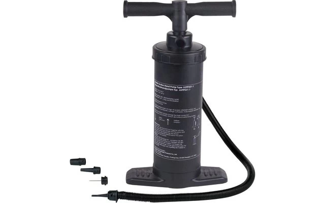 Mit vertikalem Kolben aus Kunststoff. Doppelhubpumpe 2 x 3000 ccm, Hubvolumen 2 x 3 L und patentiertem Bajonettverschluss. Mit verschiedenen Adapter inkl. Nadelventil für Fußbälle etc.