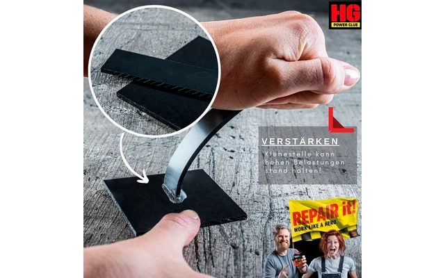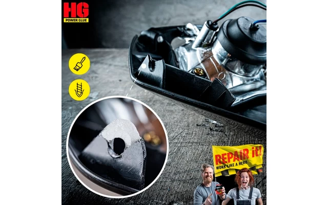 Metall kleben, Kunststoff kleben… HG Power Glue kann für zahlreiche Materialien verwendet werden. Wenn du dir nicht sicher bist, mache einfach den Materialtest. Granulat und Klebstoff auf eine kleine Stelle rieseln, kurz warten und mit dem Finger probieren, ob es verschoben werden kann. Sitzt es fest, kann gleich mit der Verklebung begonnen werden, ist es leicht zu verschieben, bearbeite die Stelle mit unserem HG Primer vor.