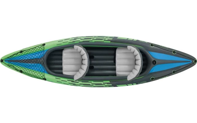 Sport-Kajak für bis zu 2 Personen geeignet! Inklusive Paddel und Pumpe, mit einzeln aufblasbaren Sitzteilen für bequemes Sitzen und ausreichend Platz. Farbe: schwarz-grün im sportlichen Design.