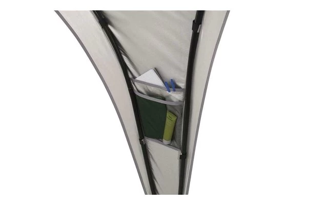 Die Outwell Summer Lounge XL bietet einen vielseitig nutzbaren, frei stehenden Unterschlupf. Die äußerst robuste und stabile Konstruktion zeichnet sich durch große Zugänge und eine bequeme Stehhöhe aus. Dank der Belüftungsöffnung an der Spitze, dem Aufhängepunkt für eine Laterne in der Mitte sowie zwei Netztaschen bietet die Lounge ein Höchstmaß an praktischer Flexibilität. Der verwendete Stoff Outtex 1500 Select Silver bietet einen UV Schutzfaktor von über 50. Um einen größeren geschützten Aufenthaltsbereich zu schaffen, können miteinander kompatible Schutzdächer über eine Regenrinne verbunden werden.
