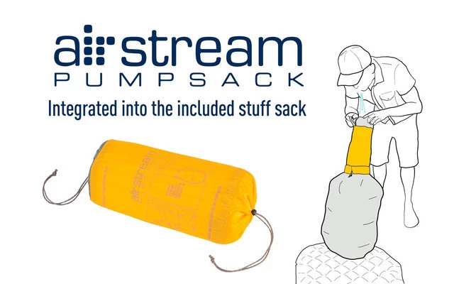 - Enthält eine Airstream Pumpe, die zum schnellen und einfachen Aufblasen in den Stoffbeutel integriert ist
