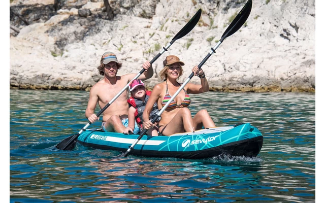 Die Kombination aus hervorragender Stabilität und Manövrierfähigkeit, gepaart mit maximalem Komfort macht das Alameda zum idealen Begleiter für Familien-Touren an geschützten Küsten und Binnengewässern. Der herausnehmbare Sitz in der Mitte ermöglicht es Ihnen, das Alameda von einem 3-Personen-Kajak mühelos zu einem 2-Personen-Kajak zu verwandeln. Die komfortablen SupporTall Sitze werden durch die Sevy-Spension Technologie abgerundet und sorgen für leichteres Paddeln.